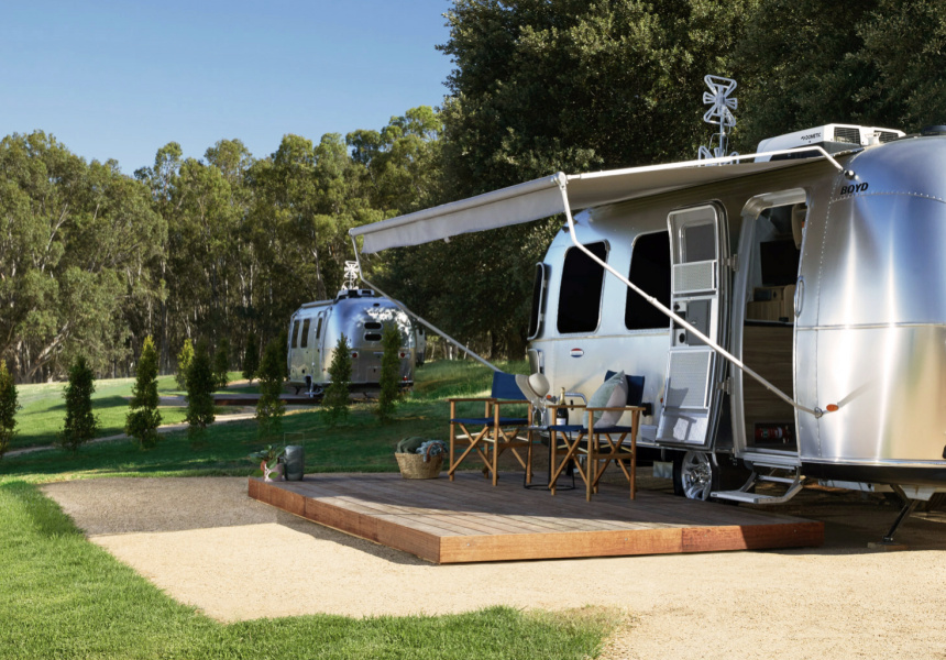 Stay in one of seven vintage American-made caravans flanked by lush vineyards.