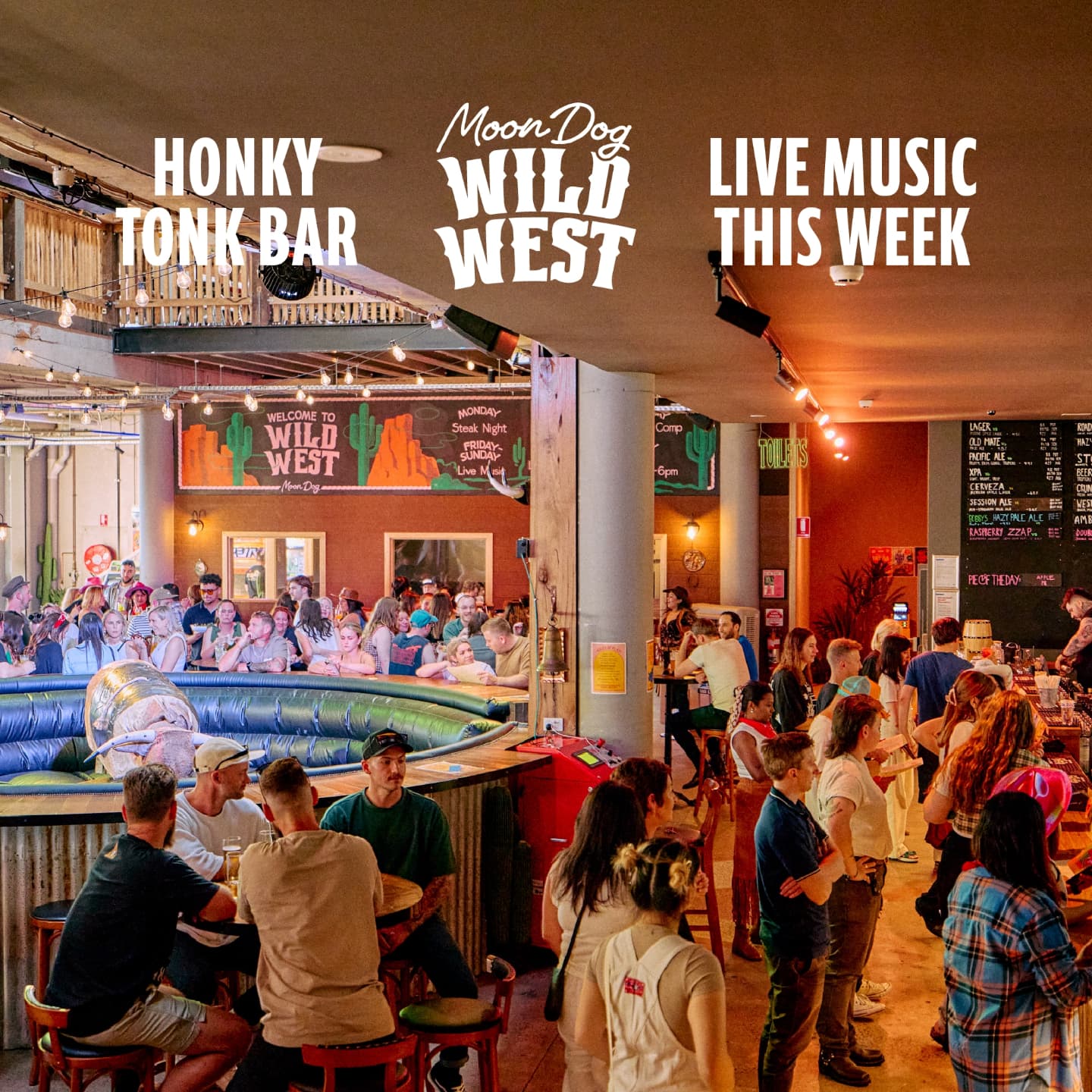 The first thing that grabs your attention upon entering the soon-to-open Moon Dog Wild West is the mechanical bullβimported from Pennsylvania and strictly 18+. Itβs the centerpiece of this sprawling, 800-capacity venue inside Footscrayβs iconic Franco Cozzo building.