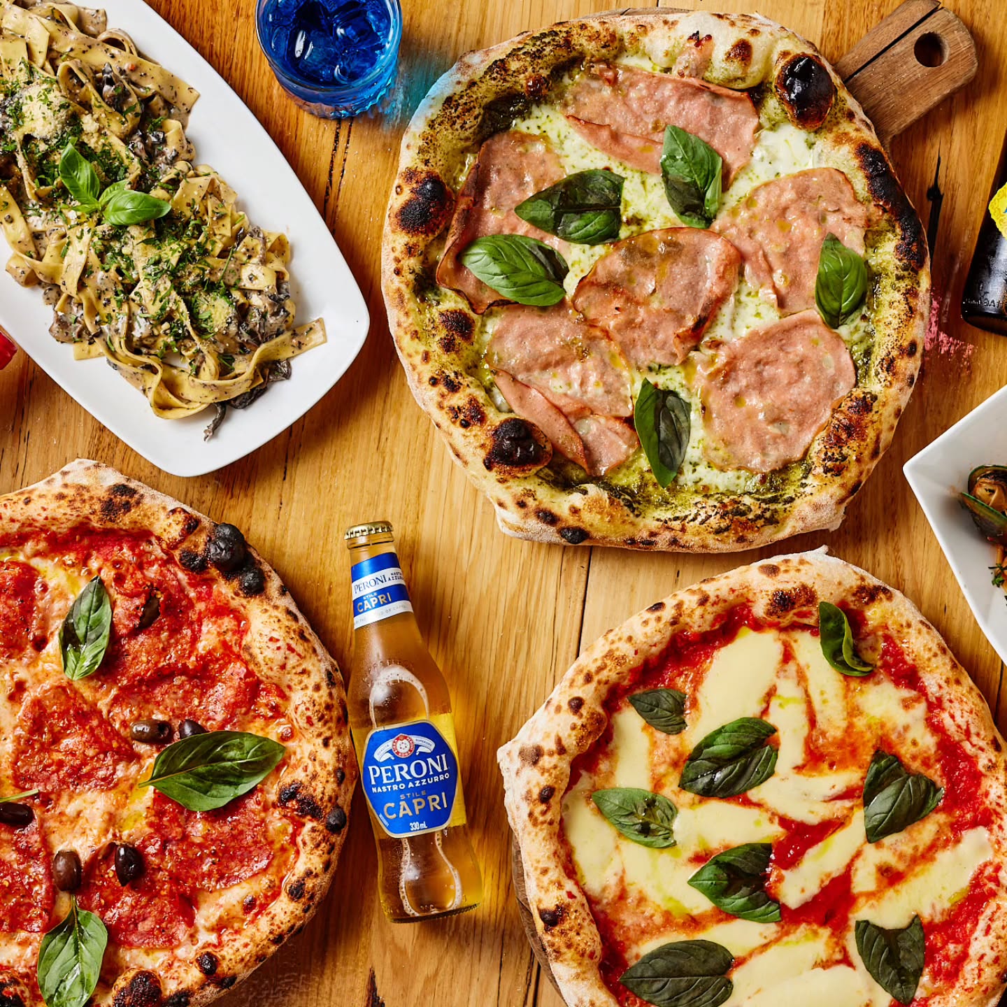 While thereβs no room for a woodfired oven, the Italian stone oven gets just as blistering hot, turning out perfectly crisp bases. Youβll find the usual classics alongside vegetarian and gluten-free options.