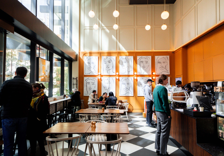The Melbourne-born cafe brand's slick southside outpost is set within a beautiful, art deco-inspired space serving house-roasted coffee and Asian-influenced brunch fare. Grab a seat anywhere and spend an hour (or two) admiring the massive, art-filled feature wall.